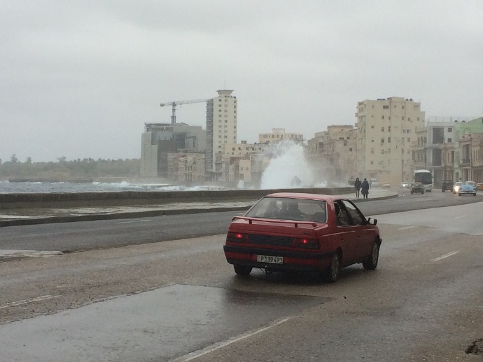 waves crash against the sea wall