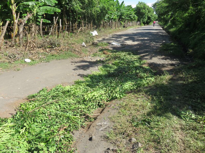 The man was spreading the cuttings on an especially rough patch of road to make it easier to drive over.