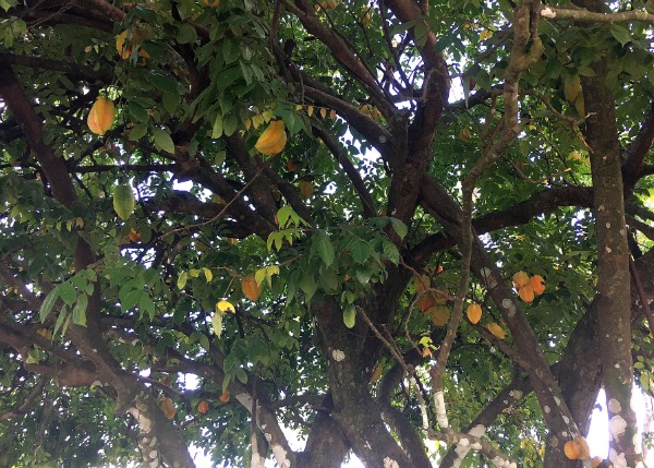 The star fruit tree is fruiting again. They are a bit tart but make a great refreshing drink.