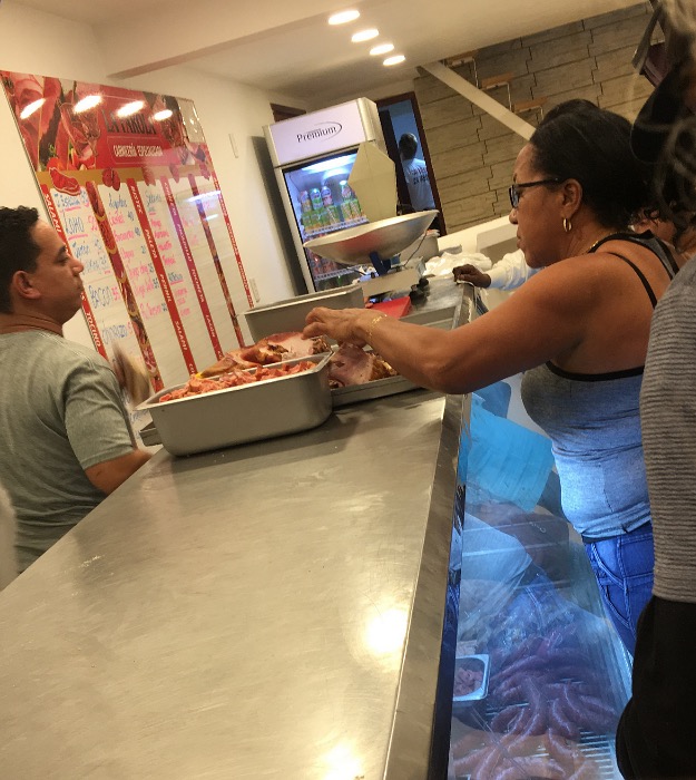 Buying ham. People don’t seem to think twice about handling and examining the meat before deciding to buy