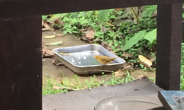 It protested loudly when asked to leave but gave in when the brown bird on the left flew to the birdbath