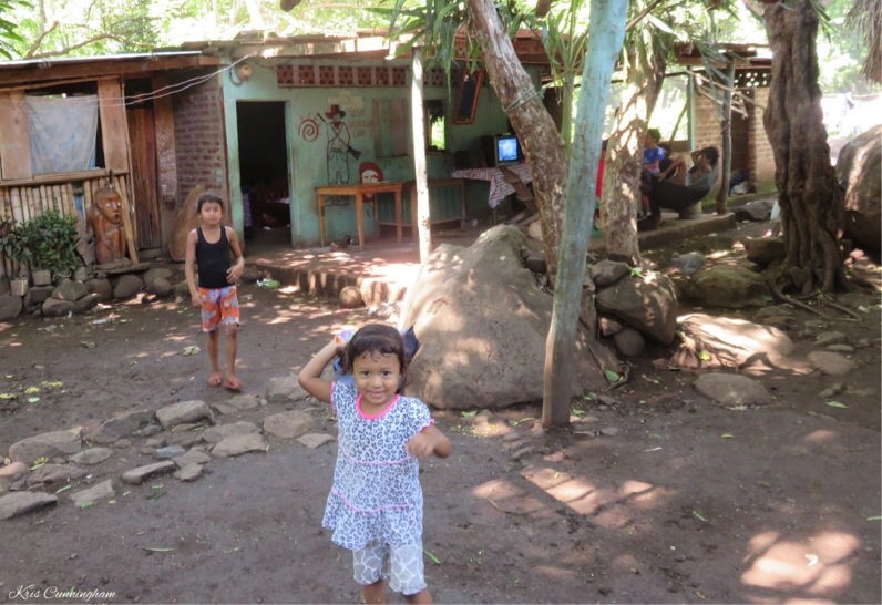This darling little girl wanted to play ball. She could throw but had no idea about catching so it was fun to show her and clap when she caught one. I walked through this area on the way to the bathroom, and it looks like the family living area. Notice the interesting sculpture near the girl in the black shirt, and the pro Che Guevara things on the green wall.