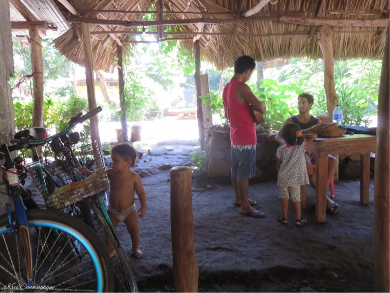 Another family member talks to another patron while a couple other kids wander around. This baby loves bikes and I was afraid he would pull them down on himself.