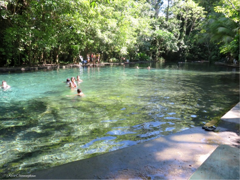 The water was cool, turquoise blue, and very clear. There was a $3 per person fee to get in, but there is a restaurant, bathrooms, changing rooms, and tables and chairs around the pool.
