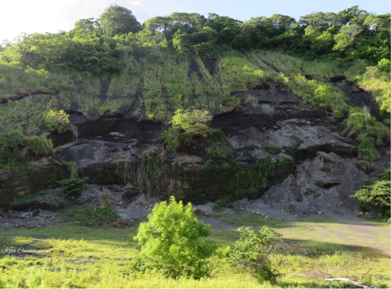 These cliffs remind one of the volcanic origin of the island.