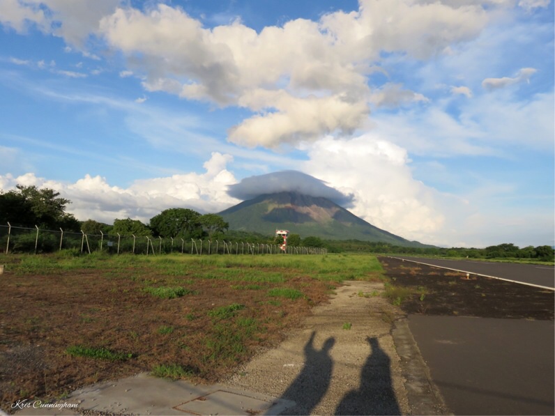 Back at the airport, the volcano was wearing a hat and we were playing with shadows