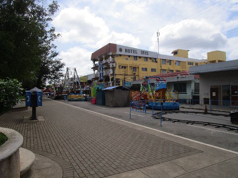 The Hotel Iris second floor bar overlooking the park is a popular hangout