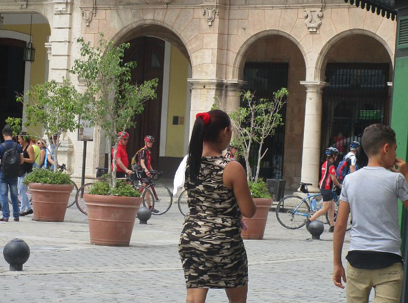 cyclists walk through the square