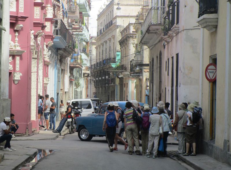a herd of tourists, and a car that can’t quite make the turn