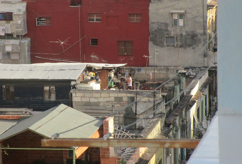 a guy exercising on his roof