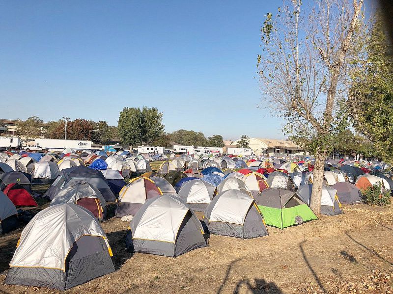 Firemen, police, national guard and other helpers camped out at the fairgrounds