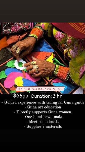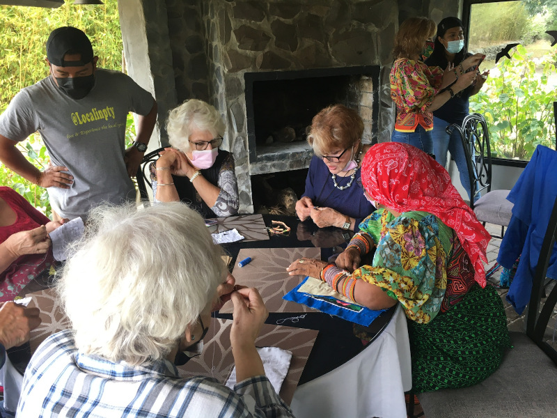 Last week I had the opportunity to do something a bit different. Well, going out for anything other than necessary errands is different, so this was a very nice day. Molas are a fabric art form of the Guna Indians who live in Eastern Panama. Since COVID these people have lost their art sales and tourism dollars, their main income, so they have gotten creative about other ways to earn money to care for their families. I wrote a post in the past about their mola masks. They use their fabric art skills to make masks, something that everyone needs these days. My mola masks are my favorites, comfortable, breathable, and beautiful. Check out this post if you want to see them, or buy them for yourself.